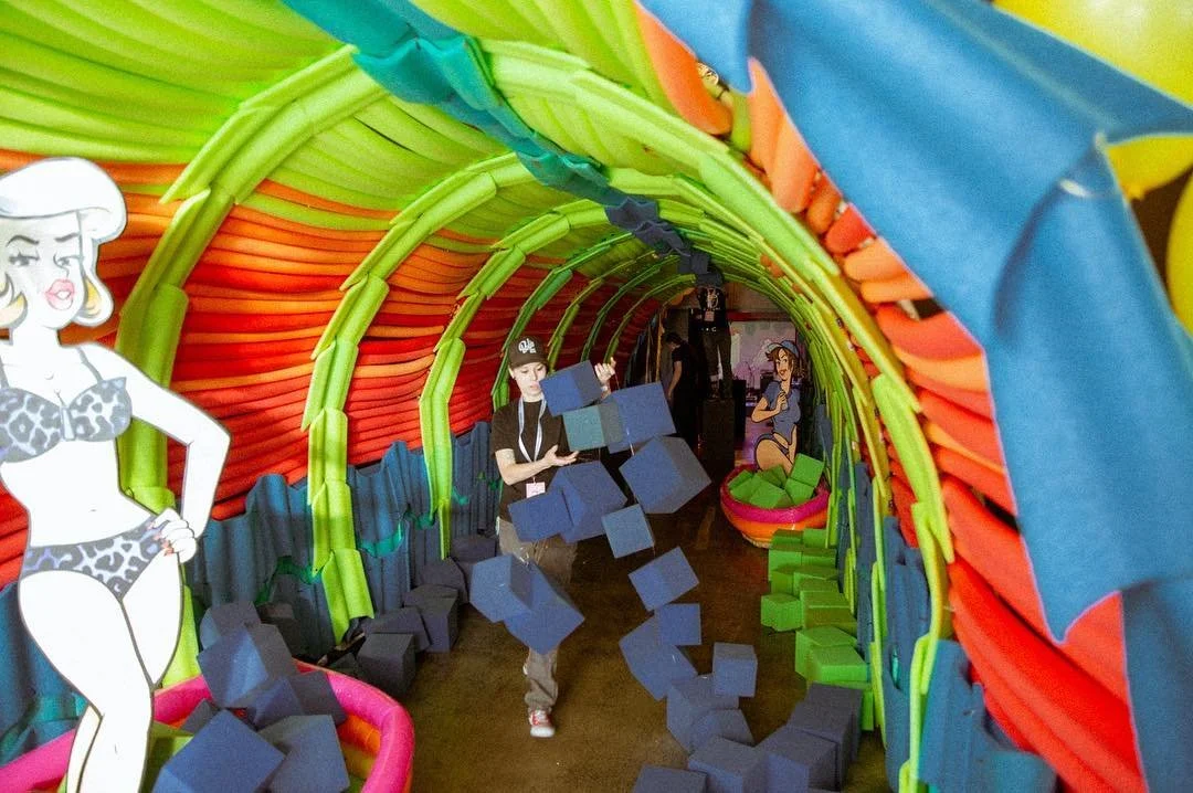 In 2018, Think Tank Presents collaborated with cARTel Collaborative Arts to produce immersive installations for their flagship BrokeLA festival. Artists featured were street artist Nina Palomba who directed a huge pool noodle tunnel, and Ray Young Chu who presented his Ray-Mart environment and performance piece inside our box truck mascot, Bloody Mary.